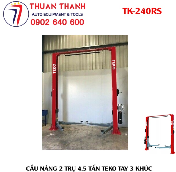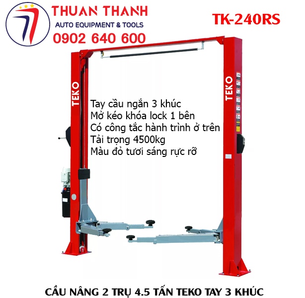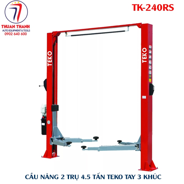 Thiết bị ô tô Thuận Thành chuyên cung cấp cầu nâng ô tô 2 trụ tải trọng nâng 4500kg TEKO TK-240RS với thiết kế đẹp, nâng hạ tải trọng lớn, tay cầu rút ngắn 3 khúc và tay cầu kéo dài loại 2 khúc đáp ứng nâng đỡ mọi dòng xe ô tô du lịch đang sử dụng phổ biến ở Việt Nam