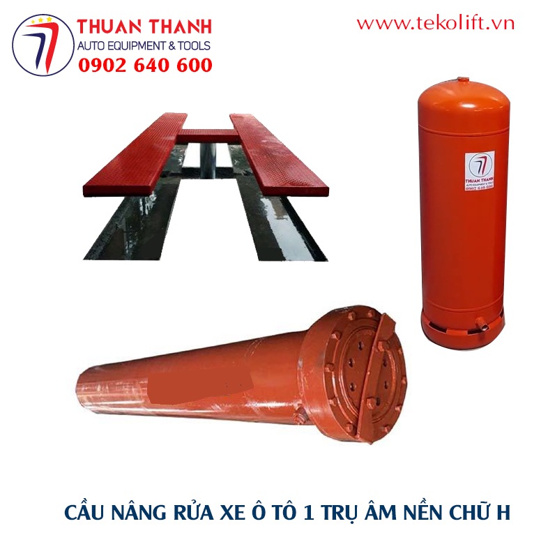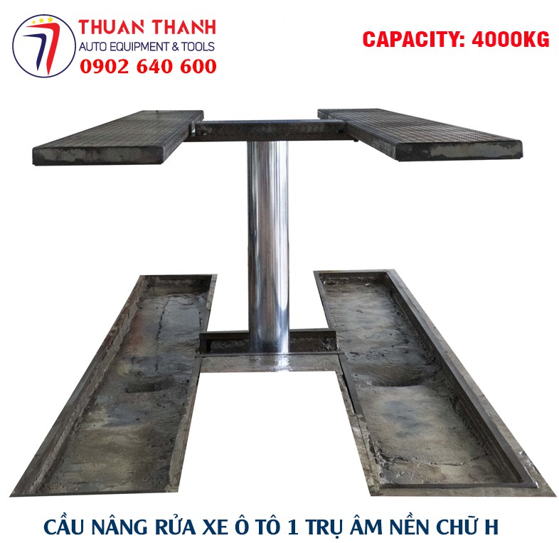 Cầu nâng rửa xe ô tô 1 trụ mặt bàn âm nền chữ H