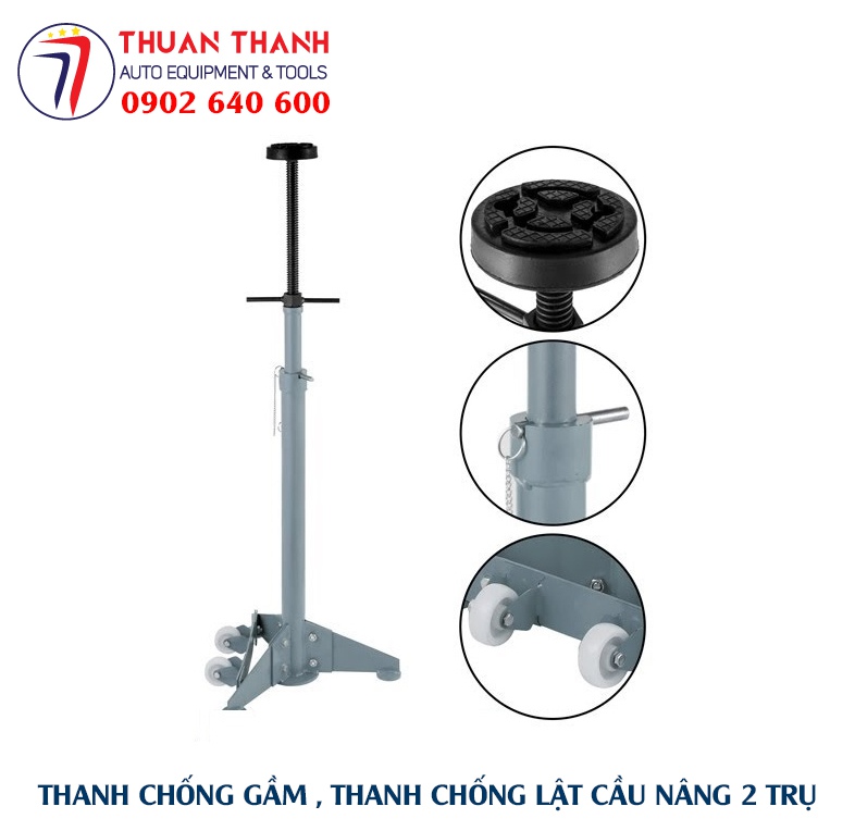 - Thanh chống gầm được cấu tạo từ trụ chính gắn bánh xe, ống tăng đưa số 1, pad tăng đưa và đỡ số 2, tay vặn nên đóng gói tiện dụng
