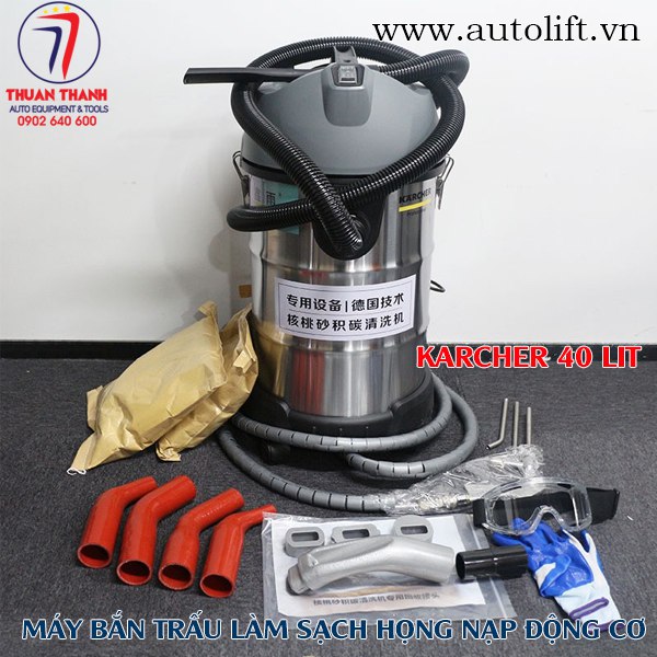 Máy bắn trấu Karcher 40 lít là giải pháp giúp anh em thợ nhanh chóng thổi bay nhanh chất bẩn bám dính từ hoạt động đốt cháy sản sinh ra muội than bám dính ở điểm đỉnh nấm và khoang hút nạp trên động cơ xăng dầu hiện nay