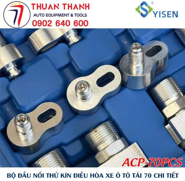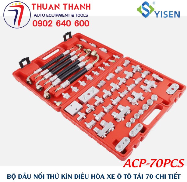 Bộ dụng cụ nối thử kín điều hòa xe ô tô, nối thử kín điều hòa ô tô, nối thử kín giàn lạnh ô tô, đầu nối thử kín điều hòa xe tải,Yisen ACP-70PCS là dụng cụ chuyên dùng cho anh em thợ sử dụng sửa chữa xe ô tô tải và các xe ô tô tương tự ở trong garage ô tô giúp tiết kiệm thời gian công sức tìm kiếm vị trí rò rỉ ở trên xe ô tô làm xe giảm độ lạnh từ từ và hao tốn gas lạnh R1234yf hoặc R134a