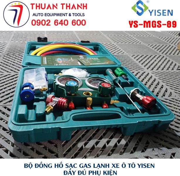 Yisen YS MGS-89 là bộ đồng hồ đo lường sạc gas lạnh chuyên dùng cho xe ô tô hiện đại ngày nay được nhập khẩu và phân phối chính hãng bởi thiết bị ô tô Thuận Thành có đầy đủ phụ kiện cần thiết cho một bộ cơ bản tiêu chuẩn nhất mà những bộ dụng cụ sạc gas lạnh khác không có được như: