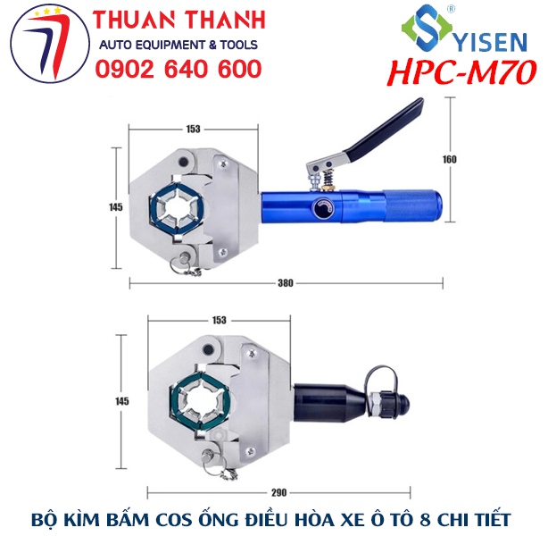 Bộ kìm bấm cos ống dẫn gas lạnh điều hòa xe ô tô cầm tay Yisen HPC-M70