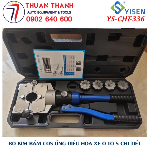 Bộ kìm bấm cos ống lạnh điều hòa xe ô tô 5 chi tiết Yisen chính hãng được nhập khẩu và cung cấp chính hãng bởi Thiết bị ô tô Thuận Thành đáp ứng nhu cầu làm việc liên tục hiệu quả cho anh em thợ sửa chữa ô tô ở trong garage hiện đại hoặc trung tâm chăm sóc bảo trì bảo dưỡng xe tải nặng và xe ô tô bình thường
