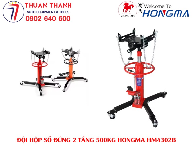 Giá đỡ hộp số đứng, tranmission jack, đội hộp số đứng 500kg chuyên dùng cho nâng hạ động cơ ô tô HONGMA được thiết kế và sản xuất cho sử dụng làm việc lâu dài ở trong garage ô tô, an toàn, hiệu quả và tiện dụng nhất