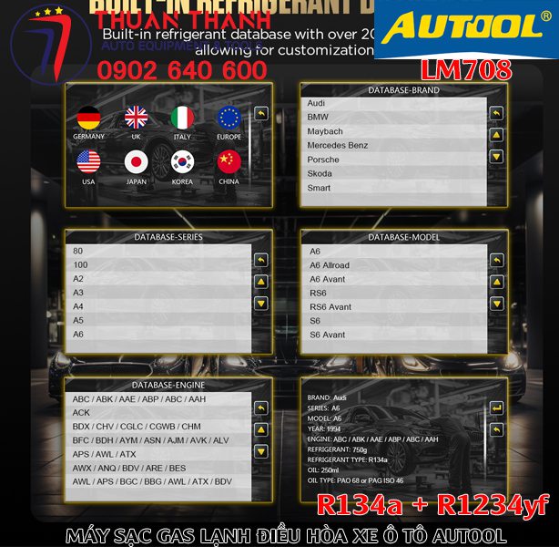 Còn máy sử dụng một loại gas lạnh là R134a như mẫu LM707 của Autool thì nên được áp dụng và vận hành cho thị trường châu Á với tất cả dòng xe ô tô phổ thông đang được sử dụng hiện nay