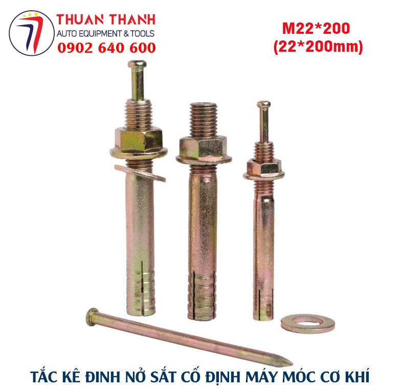 Tắc kê đinh M22 là dòng sản phẩm đặc biệt với kích thước lớn áp dụng để cố định các đế đỡ giữ của cấu kiện máy móc vận hành trong công nghiệp như: máy tiện, máy phát điện, máy hàn, máy gia công cơ khí, máy ép khuôn mẫu...